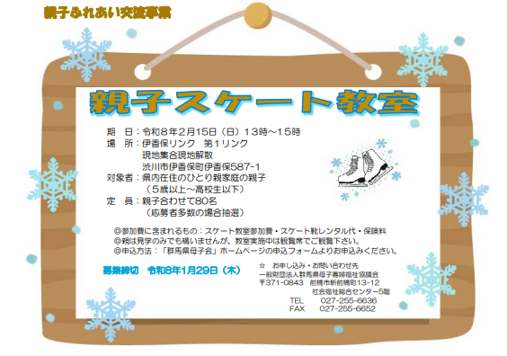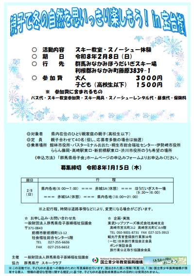 〈申込み・お問い合わせ〉県母子会事務局(TEL:027-255-6636 平日9時~17時)
